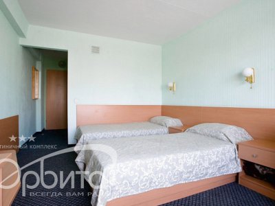 1 комната, две односпальные кровати, кресло, письменный стол, телефон (междугородняя и международная связь), телевизор (спутниковое телевидение), радио, ванная комната (с косметическими и банными принадлежностями), санузел